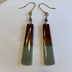 抹茶プリンだ!と思った石をそのまま買い、そのまま作りました。俺は雰囲気でアクセサリー制作をやっている。 少し珍しい、まさに抹茶カラーのグリーンに染まった石は、オパライズドウッドです。上半分はまるでカラメルソースのようなダークブラウン。見えにくいですが、間のブラウンがやや薄い部分には透け感があり、スリートーンをお楽しみいただけます。 上にはスプーンをイメージした、ヘマタイトのカットビーズを飾っています。ちゅるんとお召し上がりください。 今回もお色み確認用の近接写真を掲載しています。 ご確認ください。 使用パーツ ●オパライズドウッド ●ヘマタイト ●14kgfフックピアス ●14kgf丸カン 金具変更 ●可 作り替え ●可 おことわり ●可能な限り丁寧に制作しておりますが、素人のハンドメイド品です。市販品ほどの強度・完成度はございません。ご了承の上、優しく扱っていただけますと幸いです。 ●14kgf、サージカルステンレスは、ともに金属アレルギーが出にくいとされる素材ですが、すべての方にそれが保証されるという訳ではありません。異常を感じられた場合は、すぐ、ご着用をお止めください。 ●天然石を用いているため、作品はすべて一点ものです。いずれも完全に同一デザインでの再販は難しいこと、あらかじめご了承くださいませ。