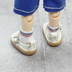 セット内容 ●マグネット内蔵バックルシューズ1足 ●靴下1足※付属の靴下は真っ白です。 ●靴箱1コ サイズ詳細 【OB11】 オビツ11ボディ ピコニーモPボディ PICCODO 2.0以降 ※初期版PicoDOLLは足が大きいため使用できません。 ステッチ、ソール、バックルの色は当方お任せ仕様ですが、ご希望があればご相談ください。 例:「ステッチとソールを黒で作ってほしい」など ハンドメイドの手縫い作品です。 素材は染色した牛ヌメ革で、硬めの仕上がりで形崩れしづらいですが、経年変化で革が柔らかくなっていくことがあります。 靴底にマグネットが内蔵されており、鉄板上では片足立ちなどのポーズがつけられます。 鉄板が無くても両足で自立します。 マグネットの効果を上げるため、靴底をかなり薄くしています。そのため、マグネットが内蔵してある部分の革が擦れて若干色が変化している場合があります。 防カビ対策として仕上げ剤を塗布しております。 ※ドールのボディはついていません。 【注意事項】 天然の革素材を使用しているため、革の表面に元からある細かい傷やシワがあります。 市販の染色済みヌメ革を使用しております。 染色したヌメ革は、時間と共に色合いが経年変化していきます。あらかじめご承知おき下さい。 色止め処理はしてありますが、ドール素体への色移り防止のため靴下着用を推奨します。 簡単に脱げてしまわないように、かなりタイトな作りになっています。 すべて着用テストをしておりますのでご安心ください。