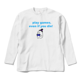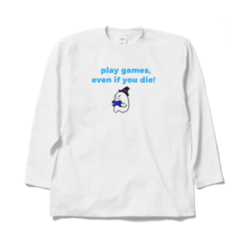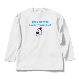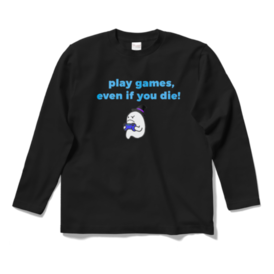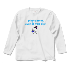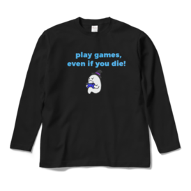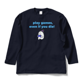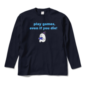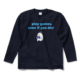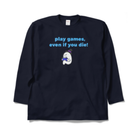 ロングスリーブTシャツ - XL - ネイビー某ベーシストのハロウィン配信用にデザインしたキャラクター。 配信で使用されなかったイラストをTシャツ化しました。 配信主がゲームする時の癖である体育座りをしています。 英文の意味は「死んでもゲームする!」 この商品はpixivFACTORYで作られた商品です。サンプル画像は完成イメージのため、実物と異なる場合があります。