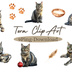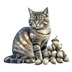 「キジトラ猫のあたたかい日々」 – 焦茶色の水彩スケッチクリップアート –
