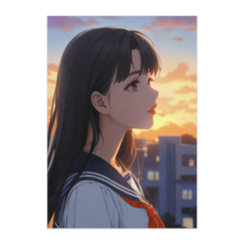 ポスター - B2この商品はpixivFACTORYで作られた商品です。サンプル画像は完成イメージのため、実物と異なる場合があります。 放課後の夕暮れ、空を見上げる少女の横顔。オレンジ色の光が頬を染め、心の奥に小さな切なさを灯します。ランドスケープの繊細な色彩で描かれた青春の一瞬。
