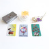 内省のための、Atelier Misticaオリジナルのタロットカードです。 「日々の気づきを紡ぐ」がその名の由来。 読みやすさを重視し、基本のライダー版の要素を残しつつ、 あなたの日常に馴染むような現代的なタロットカードを目指しました。 78枚のカードを色鮮やかなコラージュで表現、 バッキングは正逆が分からないデザインとなっています。 使用感にもこだわり、耐久性のある厚手のマット紙を採用しています。 ーガイドブックよりー はじめに 日々の中で、ふと立ち止まりたくなるときがあります。うまく言葉にできない感情や、なんとなく心にひっかかること。そんな小さな揺らぎと向き合う時間のために、このタロットは制作されました。 ひと息ついて、小さな気づきや、心の奥にあるときめきをそっと引き出してほしい。コラージュと言葉で、そんな想いをかたちにしました。 あなたの手の中で、静かな対話が始まります。共に、日々の気づきを紡いでいけますように。 0番 FOOL(愚者) このカードは、固定概念から解放されることを意味します。私たちは、こうあるべきという思い込みで自分で自分の自由を奪っていることがあります。そして、それが正しいことだと信じて疑わないことも。でも、よくよく自分の心に耳を傾ければ、本当の自分が見えてきます。現実はすぐには変わらないかもしれない。でも、心は何からも縛られず、どこまでも自由です。心が変われば行動が変わります。自由な心が創り出す未来は、きっとあなたの望むものになるでしょう。さあ、あなたの望みは何ですか? ・カード枚数 78枚 ・カードサイズ 12cm×7cm ・キャラメル箱入り ・ガイドブック付(B6・カラー・中綴じ)