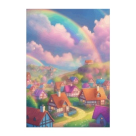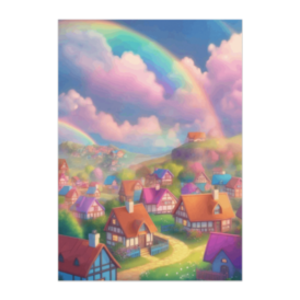 ポスター - B2この商品はpixivFACTORYで作られた商品です。サンプル画像は完成イメージのため、実物と異なる場合があります。 優しいパステルカラーに包まれた小さな村。空には二重の虹がかかり、童話のような世界が広がります。見ているだけで心が明るくなる癒しの風景ポスター。