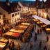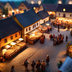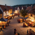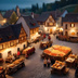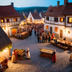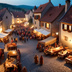 【2k背景素材】中世ファンタジー|夜の収穫祭広場|10枚セット