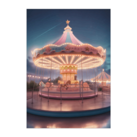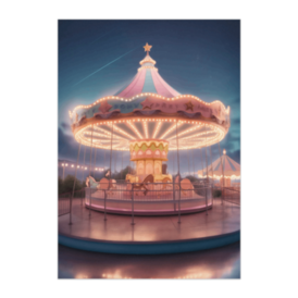ポスター - B2この商品はpixivFACTORYで作られた商品です。サンプル画像は完成イメージのため、実物と異なる場合があります。 夜空の下で静かに輝くメリーゴーランド。星屑のような灯りが幻想的な空間を照らす、ロマンチックで優しい夜のアートポスター。