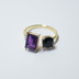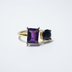 推し色★推しカプカラー★推し誕生石★ 天然石 濃いめアメジスト×ブラックスピネルのフォークリング【フリーサイズ】
