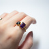 ザンビア産の宝石質アメジストと、タイ産の宝石質ブラックスピネルを使用したフォークリングです。 艶やかで深いパープルと、シャープな輝きを放つブラック。 一見対照的な色合いながら、落ち着いたトーン同士で美しく調和しています。 シンプルな中にも個性があり、甘さ控えめで大人っぽい雰囲気のリングに仕上がっています。 ★2色の石を使用したフォークリングは、推しカラーを身につける“推し活リング”としても人気です。★ 【リングのサイズ】フリーサイズ 12号〜(広げることが可能です) 【リングの素材】真鍮、[メッキ]ニッケルフリー ※金属アレルギーが出にくい素材です。 【石の種類】アメジスト(ザンビア産)・ブラックスピネル(タイ産) 【石のサイズ】6×6mm・8×6mm ※ 天然石は1つ1つ色や模様が異なります。ご理解の上でご購入ください。 ⸻ 【アメジストの石言葉】 誠実・高貴・心の平穏 【アメジストの誕生石】 2月 【アメジストについて】 心を落ち着け、直感や集中力を高めてくれるとされるヒーリングストーン。 恋愛成就や大切な人との絆を深めたい時にもおすすめの石です。 ⸻ 【ブラックスピネルの石言葉】 意志・突破・浄化・果敢 【ブラックスピネルの誕生石】 8月 【ブラックスピネルについて】 自信を高め、迷いを断ち切るサポートをしてくれる石。 問題の核心を見極め、前に進む力を与えてくれる頼もしい存在です。 ⸻