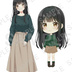 「黒髪ロング少女 透過PNG素材」通常頭身&デフォルメ エモーションパック(通常頭身10種/デフォルメ10種)