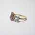 ブラジル産宝石質アメジストと宝石質スカイブルートパーズのリングです。 透明度が高くキラキラ輝くスカイブルートパーズとアメジストは 2つとも人気の天然石で、石の相性も◎ ★2色の石を使用したフォークリングは、推しカラーの組み合わせのリングを身につけ推し活する、推しグッズとしても人気があります。★ 【リングのサイズ】12号〜(広げることが可能です) 【リングの素材】真鍮、[メッキ]二ッケルフリー※金属アレルギーが出にくい素材です。 【石の種類】スカイブルートパーズ・アメジスト 【石のサイズ】6×6mm・8×6mm ※ 天然石は1つ1つ色や模様が異なります。ご理解の上でご購入ください。 ------------------------------------------------------------------------- 【アメジストの石言葉】 誠実・心の平和 【アメジストの誕生石】 2月 【アメジストについて】 創造力や感受性を高めてくれると言われています。 表面的なものではなく心の深い部分での繋がりを人と持つことをサポートしてくれます。 ------------------------------------------------------------------------- 【ブルートパーズの石言葉】 希望・誠実 【ブルートパーズの誕生石】 11月 【ブルートパーズについて】 信頼と誠実さを象徴する石と言われており、精神を安定させる効果も。思考をクリアにし、決断力も高めてくれます。 -------------------------------------------------------------------------