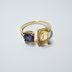 推し色★推しカプカラー★推し誕生石★ 天然石 シトリン×アイオライトのフォークリング【フリーサイズ】