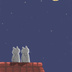 月を見上げる2匹の猫を優しいタッチで描きました。