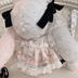 棉花娃娃、無属性ぬいぐるみ(無ぬい)のテディベアワンピースです。 サクニャンちゃん(10cm)サイズで制作しました。 アレムちゃん、デバネちゃんもギリギリ着用可能でした! Purrcappちゃんはむちむち体型の為、難しいかも。 ウエストは全て手作業で縫い付けてます。 また、かなり繊細な布の為、無理に着脱すると破損する恐れがあります。 サイズ 襟ぐり 約センチ 袖口 平置き約2.5センチ(ゴムになってます。) ウエスト 約センチ 内容 カラー テディベア柄 お花パーツ ホワイト リボン サックスブルー、ホワイト うさぎボタン シルバー 接着剤を使用しておりますが、繊細なものの為取れてしまった場合、接着剤にて再接着してください。 服飾の専門学校を卒業しておりますが、ハンドメイドになりますので、気になる方は購入をお控えください。 他にもドール用お洋服等出品しておりますので是非ご覧ください。 ぬい本体の出品ではなく、ワンピースのみの出品になります。ご注意ください。 10センチ ぬい服 無ぬい服