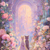 壮麗な宮殿の庭園を舞台に、美しい装飾と花々の中でロマンスを誓い合う猫たちを描いています。