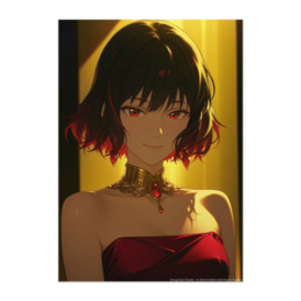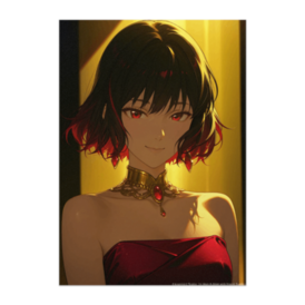 ポスター - B2この商品はpixivFACTORYで作られた商品です。サンプル画像は完成イメージのため、実物と異なる場合があります。 黄金の照明に包まれた深紅のドレスの女性。 その瞳には静かな情熱が宿り、見る者を惹きつける。 エレガントでドラマティックな現代アニメスタイルのポスター作品。