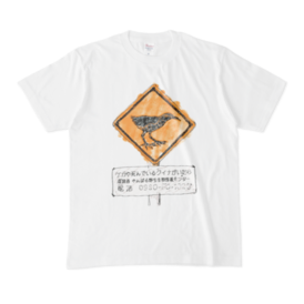 Tシャツ - XL - 白沖縄北部やんばるの道路でよく見かけるヤンバルクイナ飛び出し注意標識のイラストのTシャツです。今日も安全運転で☆
