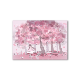 フォト風カード - 横 - 片面「桜のように綺麗に生きて、綺麗に散りたい」 春が来る度桜へ思うが、もしかしたら桜も 「あなたのように、長く咲き誇りたい」 と思うのかもしれない。もしかしたらお互いを綺麗だ。と思っているのかもしれない。 そんな思いから生まれたイラストを、ミニカードとしてみました。とてもミニサイズでスマホケースに挟むことも可能です🌸