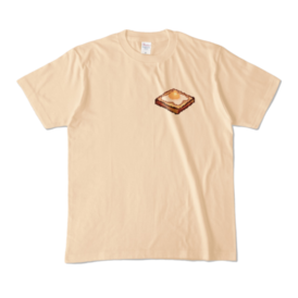 カラーTシャツ - XL - ナチュラル (淡色)🍳目玉焼きトーストTシャツ(ドット絵)/飯野喰(めしのぐい) ドット絵作家・飯野喰による、 思わずお腹がすくほど美味しそうな「目玉焼きトースト」Tシャツ。 胸元にはワンポイントで小さなトースト、 背面には存在感のあるドット絵の目玉焼きトーストを大胆にプリント。 ドット絵のレトロな質感と、 こんがり焼けたパンやとろける黄身の色味が絶妙にマッチ。 やさしいベージュカラーで、どんな服にも合わせやすい一枚です。 街歩きにも、お家時間にも、 "朝ごはん"を着る感覚でどうぞ。