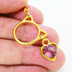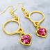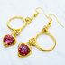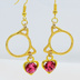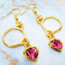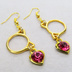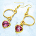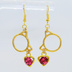 ゴールドカラー 猫フェイスフレームにクリスタルハート(マゼンタ)をつりさげた大人可愛いピアス サージカル可