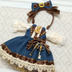 骨董屋を営んでいる店主をイメージしたワンピースになります。 胸元にクラバット(ネクタイ)を締めたジャケット風のかっちりとしたスタイルになっております。 アンティーク加工のされた鍵のチャームや金のラインが入ったリボンをふんだんに使用し、クラシカルでありながらゴージャスな雰囲気に仕立てました。 今回から新色のインディゴが加わりました! ●セット内容 ・ワンピース(後ろスナップ2つ留め) ・リボンカチューシャ(ワイヤー入りなのである程度のサイズ調節が可能) 以上2点になります。 ※上記以外の撮影小物は含まれません。 カチューシャはゴムタイプのヘッドドレスに変更可能です。 ねんどろいどヘッドや4インチより大きめのヘッドに着用させたい方はゴムタイプへの変更をおすすめしております。 ゴムへの変更をご希望の場合はご注文後に「ショップにメッセージを送る」からゴムに変更希望の旨をお教えください。 連絡の行き違いによるトラブルを防ぐため、変更希望のご連絡は【ご注文した日から3日以内まで】にお願い致します。 特にご連絡がない場合はワイヤータイプでのお届けになります。 ※こちらの商品はお一人様各色2セットずつまでご注文いただけます。 ※カチューシャは4インチのヘッドに合わせてお作りしていますが、芯にワイヤーを使用しているのである程度のサイズ調節が可能です。 ※一部繊細な素材を使用しておりますので、強く力を入れたり、引っ張ったりしないようご注意下さい。 ※身頃とスカート部分にのみ裏地がついております。袖には裏地はついておりません。 ボディへの色移り等気になる場合は長時間の着せ付けにはご注意下さい。 ※デザインの都合上、袖口が狭い仕様になっております。着せつけの際はハンドパーツを外してから着用させて下さい。 ※商品画像はなるべく実物に近づけるよう徹底しておりますが、お使いのモニターの種類や設定、部屋の照明等によって実際の商品のお色と多少異なる場合がございます。 ※モデルのドールは ・5インチヘッド+ねんどろいどどーるボディ(身長調整キット使用) ・4インチヘッド+オビツ11ボディになります。 オビツ11サイズのボディに合わせてお作りしておりますがねんどろいどどーるにも着せ付けることができます。 ねんどろいどどーるに着せ付ける場合はデフォルトのままですとスカートの丈が長いので身長調整キットの使用を推奨しております。
