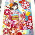 手描きイラスト コピー用紙A5サイズ 振袖少女 2枚セット