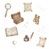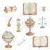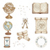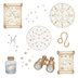 いにしえの天文学者が描いたかのような、ノスタルジックで知的な魅力あふれる星座テーマのクリップアートコレクションが誕生しました。手描き風の繊細なタッチと、セピア色やアンティーク調の色合いが、神秘的な星の世界を上品に表現します。巻物になった星図、天文儀、望遠鏡、そして星座のシンボルや天体そのものまで、星への探求心をくすぐるアイテムを豊富に取り揃えました。