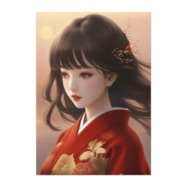 ポスター - B2この商品はpixivFACTORYで作られた商品です。サンプル画像は完成イメージのため、実物と異なる場合があります。 夕暮れのやわらかな光に包まれ、赤い着物が美しく輝く和美人の横顔アート。 金の花柄と繊細な髪飾りが上品さを添え、幻想的で静かな時間を感じさせる一枚です。 飾るだけで部屋に温もりを与えるポスター作品。