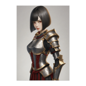 ポスター - B2この商品はpixivFACTORYで作られた商品です。サンプル画像は完成イメージのため、実物と異なる場合があります。 赤い編み紐と銀の甲冑を纏い、凛とした眼差しで前を見据える戦乙女。 甲冑に刻まれた薔薇模様と、落ち着いたボブヘアが静かな強さを際立たせる一枚。 力強さと美しさが同居するファンタジーアートポスターです。