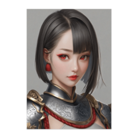 ポスター - B2この商品はpixivFACTORYで作られた商品です。サンプル画像は完成イメージのため、実物と異なる場合があります。 精巧な銀装飾の甲冑に身を包み、赤いイヤーアクセが揺れる戦士の少女。 優しい微笑みと鋭い赤いアイメイクが美しく調和し、柔らかさの中に芯の強さを感じる一枚。 清潔感と存在感を兼ね備えたファンタジーポスターです。