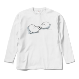 ロングスリーブTシャツ - XL - ホワイトこの商品はpixivFACTORYで作られた商品です。サンプル画像は完成イメージのため、実物と異なる場合があります。 2頭のアザラシのラフスケッチがデザインされた綿100%Tシャツです。 色:白 5.6ozのやや厚めの生地なので、これ1枚で着ることもできます。 着丈が長めなので、LやXLを購入される方は特にサイズの確認をしていただくことをおすすめします。 A 100% cotton T-shirt featuring a rough sketch of two seals. 5.6oz slightly thicker fabric, so you can wear this on its own. Color: White The length of the garment is long, so we recommend that you check your size, especially if you are purchasing a L or XL. Please refer to this article for size comparison.