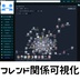 フレンド同士のつながりを表示する事が出来ます。 以下のような補助機能があります。 ・任意のフレンドからn番目までのつながりを表示 ・フレンド外の任意のユーザーとフレンドの繋がり分析(グラフへの追加) ・任意のユーザーと自分の共通のフレンドリスト表示 ・表上の任意のユーザーのユーザーページを開く