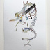 こちらは水彩紙に墨、水彩、色鉛筆で着彩した