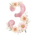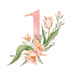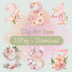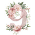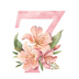 水彩ピンクアンティーク・数字と花のクリップアートセット(全10点 PNG)