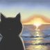ノスタルジックな夕暮れの景色と逆光の猫の姿が、どこか懐かしく印象的な作品です。 猫があなたに何かを伝えてるようにも見えませんか?