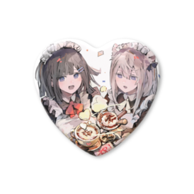ハート缶バッジ - 57 × 52.5mmインディーゲーム『電気街の喫茶店』1周年を記念して、「逢編いあむ」さん描き下ろしのコラボイラストをグッズ化! 『電気街の喫茶店』のメイドさん「シロ」と、メイド服の『アニマロイドガール』の少女が、喫茶店「ふわふわ」の名物「ふわふわスペシャル」と「アフォガード」でおもてなし。 この商品はpixivFACTORYで作られた商品です。サンプル画像は完成イメージのため、実物と異なる場合があります。 ※本商品は予約制ではなく、ご注文・お支払いただき次第pixivFACTORYで製造が開始されます。 ※本商品はpixivFACTORYで製造・発送されるため、オマケのコラボノベルティステッカーは付属しません。