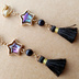 ---------------------------------------------------------------------------------- こちらは【イベントに夢中!7ー魔法に夢中2ー】に出品の作品です。 今回は新作として星モチーフを中心にポップな性格の魔女のアクセサリーをイメージして作りました。 同イベントには過去作と併せて出品しています。 ---------------------------------------------------------------------------------- 中空のメタルビーズとガラスビーズを組み合わせ、星が2重に見えるように作ったパーツと艶やかなシルクタッセルを組み合わせたイヤリングです。 ※金属アレルギー、メッキ加工が肌に合わない方は注文をお控えください。