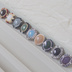 映画の時代のバブリーなピアスです。 ボディコンのお姉さんの耳についていそうな、というイメージで作りました。 着画は原作の吉祥イメージの私物ですが、大きさなど参考にしていただけると幸いです。 ・洛軍 信一にもらった服のイメージです。 渋めの紫で肌馴染みよく、かつ洛軍の誠実さを。 シルバーのビーズは四少のイメージ。金具もシルバーです。 ・信一 深いネイビーです。 ミラーボールのパーツを使用しています🎤 金具はシルバーです。 ・四仔 深緑のカボションと偏光のビーズを使用しています。 金具はシルバーです。 ・十二少 まろやかなミルクティー色のカボションです。 パールと組み合わせ上品に仕上げたので使いやすさ抜群です。 金具はゴールドです。 ・龍捲風 散髪屋の衣装のイメージです。 金具はシルバーです。 ・虎兄貴 1粒のパールは目です。 ブラックでレディライクな印象です。 金具はゴールドです。 ・秋兄貴 気品ある雰囲気です。 3つのパールは彼の家族のイメージです。 金具はシルバーです。 ・王九 ボスになった衣装をイメージしています。 ギラついている感じを出しました。 金具はゴールドです。 ・大ボス ブラウンでコーディネートに組み込みやすいです。 ブレスレットの赤をアクセントにしました。 金具はゴールドです。 ピアスでのご用意となります。 医療用のものではございませんが、少しでもアレルギーなどが出にくいようステンレスの金具を使用しております。 ☆通常、あんしんBOOTHパックネコポスにて発送予定です。 ☆こちらはハンドメイド品です。心をこめて作っておりますが気になる点がございましたら、ご注文前にお気軽にご質問ください。不良品以外のお買い上げ後のお客様のご都合での返品、返金対応はできかねます。よろしくお願い致します。 お直し等はすぐに対応いたしますのでお知らせください。