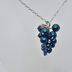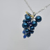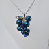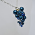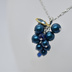 深海に揺蕩う夢幻の街をイメージしてお仕立てしたペンダントです。 深いネイビーのパールに、鮮やかなブルーとネイビーのクリスタルをアクセントに、すずなりの葡萄のようなペンダントトップをお仕立てしております。 葡萄の葉に当たる部分には、ホースアイの形のガラスクリスタルを飾りました。 ゆったりとした60cmのペンダントチェーンには、デザイン性の高いフィガロチェーンを採用いたしました。 一般的にマチネと呼ばれる長さで、胸上のあたりにモチーフが来る程度の長さとなります。(身長などによって着用感は異なります) 秋冬の装いに、お洋服の上からご着用いただいても素敵ではないかと存じます。 同じテーマでお仕立てしたブローチ・耳飾りもございます。 合わせてご覧ください。 ・深海に揺蕩う ブローチ https://yuu3004.booth.pm/items/7664595 チェーン:約50cm アジャスター:約5cm ご指定をいただければチェーンの長さの変更も承ります。 ご希望の場合にはご注文後に、長さ変更希望の旨をメッセージにてご相談ください。 (延長の場合には追加料金をいただきます。専用ページを作成いたしますので、お気軽にご相談ください。) 使用したビーズ類はすべてオーストリア産の高級クリスタルガラス(貴和クリスタル)です。 シャネルストーンの縁取りは真鍮製です。変色防止コーティングを施しておりますが、必ず変色を防げるというものではございません。 本体のチェーンは丹銅製、エンドパーツは真鍮と合金製のものを使用いたしました。 これらの金具には本ロジウムメッキが施されており、金属アレルギーがやや出にくい素材となっておりますが、必ずしも金属アレルギーを起こさないものではございません。 別料金でサージカルステンレス素材のネックチェーンへの変更が可能です。 https://yuu3004.booth.pm/items/4335135 (ステンレスチェーンにご変更いただいた場合には、チェーンのデザインが大きく変わります。あらかじめご了承ください。) ※こちらは二次創作のファングッズであり、著作権者その他関係者様とは一切関係がございません。ご理解のある方のみご購入をお願いいたします。