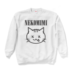スウェット - XL - ホワイト某オルタナロックバンドの著名人が描いた、落書きのパロディーです。猫ちゃん好きの方、是非!