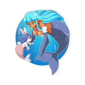 人魚になったタマエさんと海中デートでデレデレのケートスさんステッカーです。 ギザ歯巨大褐色巨乳鯨人魚…そりゃもう性癖詰め込みまくりキャラよッ!!