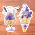 水彩で描いたイラストを使用したステッカーです。 ラベンダークリームソーダとラベンダーソフトクリームをステッカーにしました。 お好きなところに貼ったり、スマホケースに入るサイズなので挟んでお使いいただけます。 ラベンダーの香りがするような甘いデザインとなっております♪ 美味しそうなイラストと優しいラベンダーカラーとともに楽しんでいただけたら嬉しいです。 ・。*・。*・。*・。*・。*・。*・。*・。*・。*・。*・。*・。*・。*・。*・。* ~スイーツラインナップ~ ・「ラベンダークリームソーダ~Lavender Cream Soda~」 ラベンダーカラーがとっても綺麗なクリームソーダ。 ラベンダーの香りがふんわり香り、レモンの爽やかさが口いっぱいに広がります♪ くまさんの形をしたレモンがポイント♪ バニラアイスの甘味としゅわしゅわの炭酸のハーモニーが楽しい一品です。 ・「ラベンダーソフトクリーム~Lavender soft cream~」 ラベンダーとバニラのミックス味♪ ラベンダーの香りがふんわり香り、爽やかで濃厚なソフトクリームになりました! 食べられるエディブルフラワーを散らして黄色をアクセントに。 ラベンダーの模様が入ったコーンとくまさんのイラストが入ったスリーブがポイント♪ ・。*・。*・。*・。*・。*・。*・。*・。*・。*・。*・。*・。*・。*・。*・。* ◯サイズ: ・ラベンダークリームソーダ:約たて83×よこ55㎜ ・ラベンダーソフトクリーム:約たて90×よこ48.5㎜ ◯素材:ミラーコート紙(非耐水) #ラベンダー #クリームソーダ #ソフトクリーム #くま #可愛い #おしゃれ #パープル #紫 #レモン #アナログ