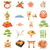 大人かわいい お正月クリップアート 21点セット|水彩風 PNG(透過)+和柄背景付き|年賀状・挨拶状・装飾に