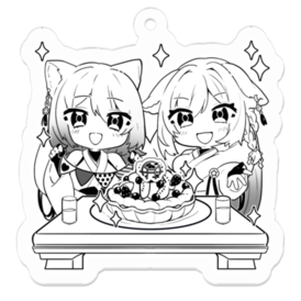 アクリルキーホルダー - 50 x 50 (mm)販売期間:2025/12/23 23:59まで! 記念日にあわせて販売したオリジナルケーキの特典イラストを使用した「アクリルキーホルダー」です。 かわいいSDイラストの春藤姉妹を飾ったりお出かけに連れて行ってください✨ ※提供いただいた企業からイラストの再使用については許可を頂いております。 ※この商品はpixivFACTORYで作られた商品です。サンプル画像は完成イメージのため、実物と異なる場合があります。