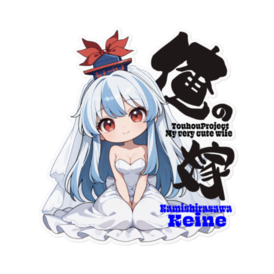 ステッカー - 160 x 160 (mm)(キャラのみ)💍💖歴史を護る彼女が、あなたの未来を共に創るパートナーに💍💖 💖💍東方Project 上白沢慧音は俺の嫁 ステッカー💍💖 普段は寺子屋の先生として厳しくも優しい上白沢慧音が、純白のウエディングドレス姿でステッカーになりました。 知的で凛とした表情の中に、あなただけに向けた柔らかな微笑みを浮かべて。 「俺の嫁」という言葉を受け入れた彼女の姿は、いつもの「けーね先生」とは違う、守りたくなるような愛らしさに溢れています。 彼女となら、これから刻まれる二人の歴史も、決して忘れられることのない永遠の記憶となるはず。 PCやタブレット、身近なアイテムに貼って、頼れる彼女と「ずっと一緒」の毎日を過ごしてください。 この商品はpixivFACTORYで作られた商品です。サンプル画像は完成イメージのため、実物と異なる場合があります。