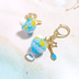 夜空をイメージしたかき氷のキーホルダーです。 涼しげな青色のシロップをシャリシャリ氷にかけて夜空を、 バニラアイスでお月様、ゼリーでお星様を表現しました。 ひとすくいしたスプーンと星のチャームが一緒にゆらゆら揺れます。 主にレジンを使用し、ひとつひとつ手作業で丁寧に製作しています。 そのため、形や色、デコレーション等に多少個体差がございます。 世界に一つだけの手作りの風合いとして楽しんでいただけると幸いです。 【目安のサイズ】 ・全体の長さ 8cm 【材質】 レジン、樹脂粘土、アクリル塗料、ニス他