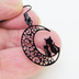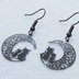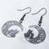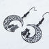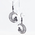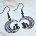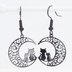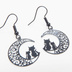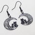 アラベスク調の透かし模様の三日月と親子猫のシルエットモチーフのゴシック風ブラックピアス イヤリング