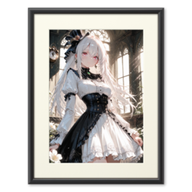 複製画(プリモアート) - A3白と黒のコントラストが美しいクラシカルな少女を描いたファンタジーアート作品です。 陽光が差し込むアンティーク調の温室、咲き誇る花々、精巧な衣装デザインが調和し、静かな時間が流れるような世界観を表現しました。 この商品はpixivFACTORYで作られた商品です。サンプル画像は完成イメージのため、実物と異なる場合があります。