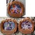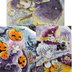 三人の魔女っ子を描きました。 「もてもて」…メイン作品のカボチャ達にモテててしまってるイメージ。 「キラキラ」…月の光に照らされて飛んでくイメージ。 「わくわく」…ハロウィンのお菓子に喜んでるイメージ。 原画は「キラキラ」と「わくわく」はきらきらしております。 三人とも可愛く描けましたので、お気に入りの魔女っ子がおりましたら どうぞよろしくお願いいたします。 3点とも画像②のフレーム付で発送致します。 額装…縦11.5㎝ 横11.5㎝ 2025・10月制作 透明水彩、ポスターカラー、ラメ絵の具 クリックポストで発送します。 ※ご覧のモニターによって色が違って見える場合があります。ご了承下さい。