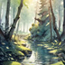 水と光のファンタジー背景セット(4枚)|水彩タッチ・創作向け・3000×4000px|デジタル素材