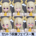 朱羅系規格のオリジナルフェイスパーツです。 ※スキンカラーはAになります。 UVプリンタによって目、口が印刷済みのためそのままご使用いただけます。 セットごとに6種類の表情を収録しています。