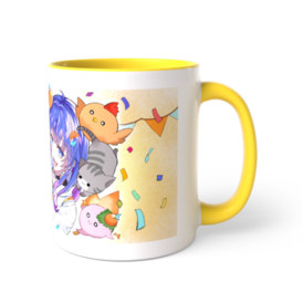 ほわほわイエローどれみファソ(リスナーさん)の皆と写っているマグカップです✨ にまちが誕生日にプレゼントしてくれた、あさみさんのイラストです! ツートンカラーマグカップ - 直径 8.2cm / 高さ 9.5cm
